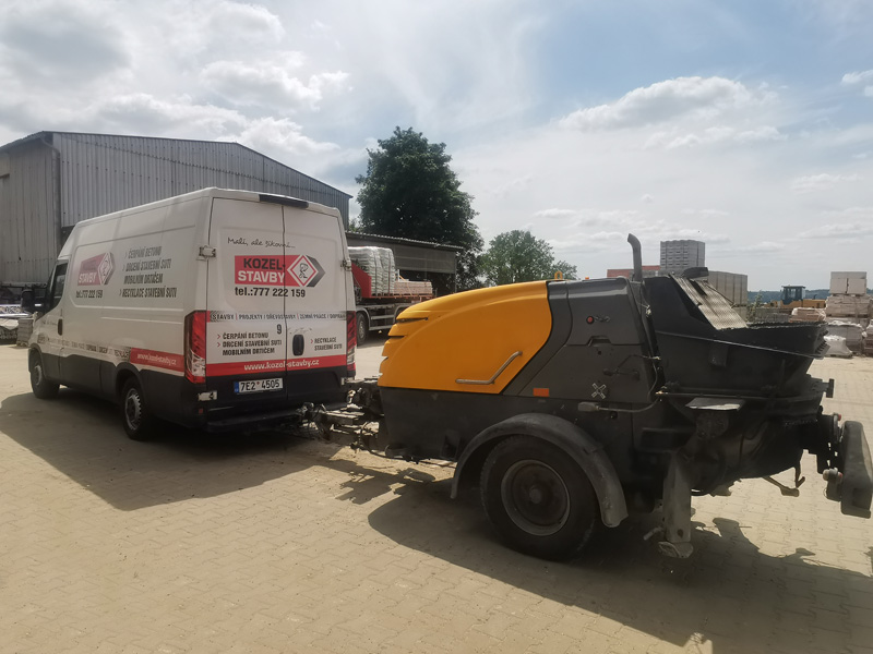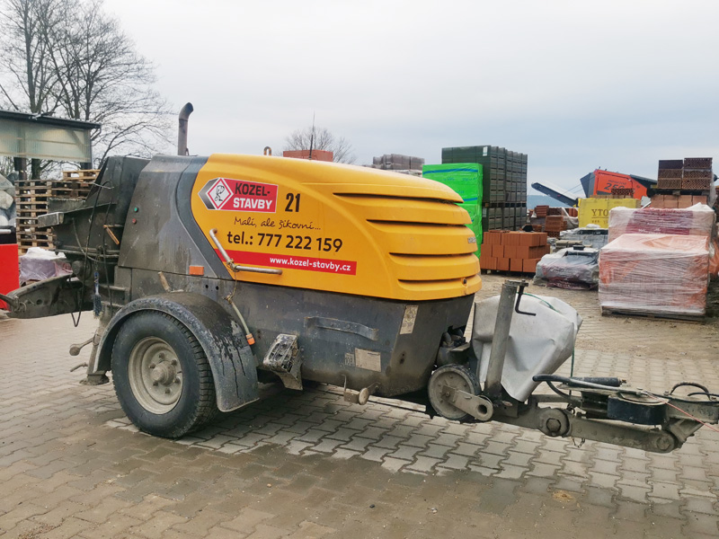 - Personál: Minimálně 3 pracovníky pro přípravu hadic na místo ukládání a následné urovnání betonu.